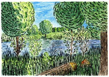 "Voda dává tvář centru města. V něm se pohybuju téměř denně a užívám si to. Vždy mě na nich bavili kolemjdoucí. Je zvláštní pozorovat, jak odlišně vypadají lidé na okraji města a v jeho centru. Mám pocit, že lidé v centru jsou elegantnější a oblékají se tak, aby se sem hodili. Sedí v kavárnách či na slunných předzahrádkách a s bohémským klidem nasávají atmosféru Budějek. Na okraji potkávám spíš sportovní typy, kteří soupeří s pejskaři a předbíhají se na úzkých pěšinkách."