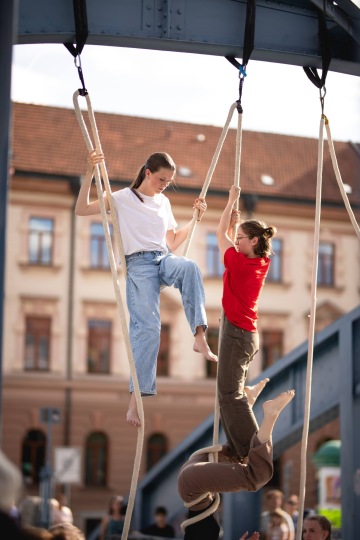 The BRIDGES Festival is a multi-day open-air showcase of contemporary circus. It takes place on the Golden Bridge in Budweis and its surroundings—right in the heart of the city, among people and above the river.