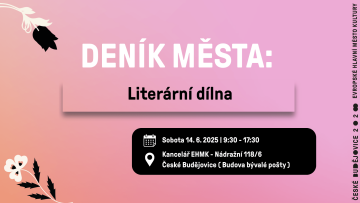 Zveme vás na jednodenní literární dílnu s Deníkem města, která se uskuteční v sobotu 14. června v prostorách Kanceláře EHMK v budově bývalé pošty. Pod vedením spisovatelky Zuzany Kultánové a básníka a fotografa Ondřeje Lipára (editora projektu) se vydáme do světa příběhů, hlasů a pozorování, která tvoří genius loci.