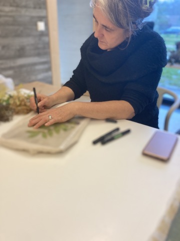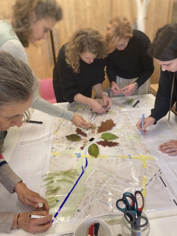 Součástí programu byl také workshop cyanotypie – historické fotografické techniky, při které jsme za pomoci denního světla (v našem případě i toho zataženého) vytvořili pro tuto techniku charakteristické modré otisky přírodnin na textil. Tato technika pro nás nebyla jen kreativní aktivitou. Použili jsme ji i jako nástroj k netradičnímu přemýšlení nad okolím místa a mapou Slavonic.