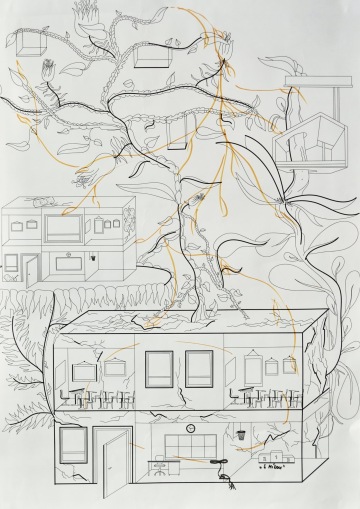 Abychom zvládli lépe přejít od popisování problému k promýšlení různých možností jeho řešení pokračovali jsme v diskuzi nad stejným, ale černobílým plakátem bez postav a bez děje. Pouze tři rostliny vyrůstající z budovy a představující tři možné cesty proměny současné školy. Jaké vzdělávání bychom si přáli vidět? Po čem toužíme?
