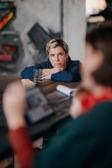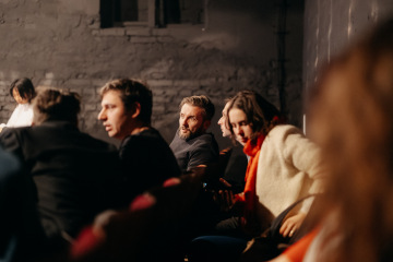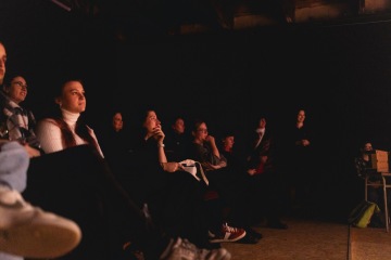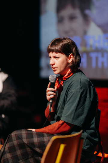 Poté přišlo povídání a premiéra uměleckého filmu Like a Salve (For a Wound), který vznikl během Tereziny rezidence. Na pódiu se s ní potkali členové BudQueer, trans a queer osoby z regionu i spoluautoři filmu.
