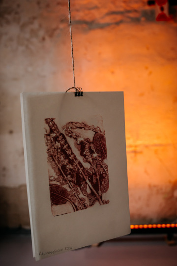 Kristina ve své práci propojila tisk a osobní i kolektivní paměť. Vytvářela projekt s komunitou Nadija i se žáky školy Nová, kde se potkává česká a ukrajinská zkušenost.