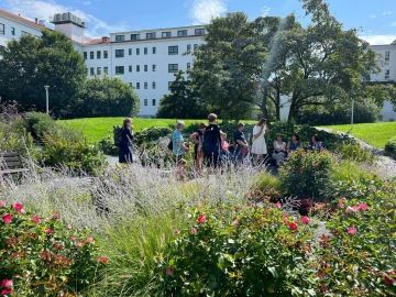 Příběhů jsme ale slyšeli mnohem víc. Třeba v rámci komentované procházky nemocničních zahrad se zahradní a krajinnou architektkou Lenkou Marcínovou. Vzala nás do zahrady psychiatrického oddělení, kam se za běžných okolností nesmí, dále jsme prošli zahrady nemocniční školky a prohlídku jsme zakončili v ústřední oáze celého objektu.