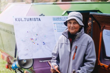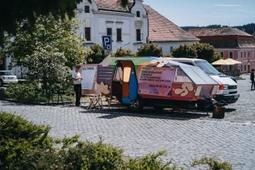 V Týně nad Vltavou jsme svou maringotku postavili na náměstí a s pomocí pocitové mapy zjišťovali vztah k městu přímo od místních. Ptali jsme se na místa, kde to podle nich žije kulturou, na jaká místa ve městě jsou obyvatelé hrdí, kde by si přáli změnu.