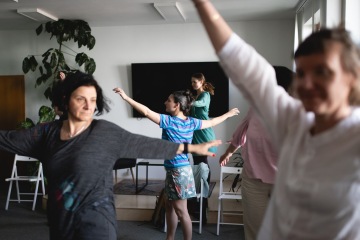 Tanečně pohybová lekce s lektorkou Lindou Hampl Mezrovou otevřela otázku jak můžeme myslet tělem. Může být pohyb prvním krokem ke změně?