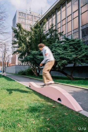 U/U Studio tvoří architekti a inženýři, které spojuje vášeň pro skateboarding. Volný čas rádi tráví ve veřejném prostoru, všímají si detailů, mají cit pro dané místo. Studiem navržená řešení tak neslouží jen pro skateboarding, ale jako prostor vybízející k setkávání.