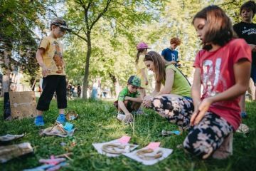 Po celé dopoledne se děti od 2 let se svými rodiči mohly účastnit tvořivé dílny. Co vše se dá vymyslet s papírem nebo z papíru? Děti byly svérázné. Jejich postupy spočívaly v mačkání, protrhávání, vrstvení i schovávání se.